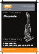 FAQ’s WARNING: To reduce the risk of personal injury, unplug the hard floor cleaner before performing maintenance/troubleshooting checks. Problem Cause Solution Cleaner won’t run No electricity in the electrical outlet Check fuse or breaker Blown fuse/tripped breaker Reset circuit breaker or replace fuse Automatic shut-off activated Turn cleaner off and then on again or empty the dirty water tank (See page 7).