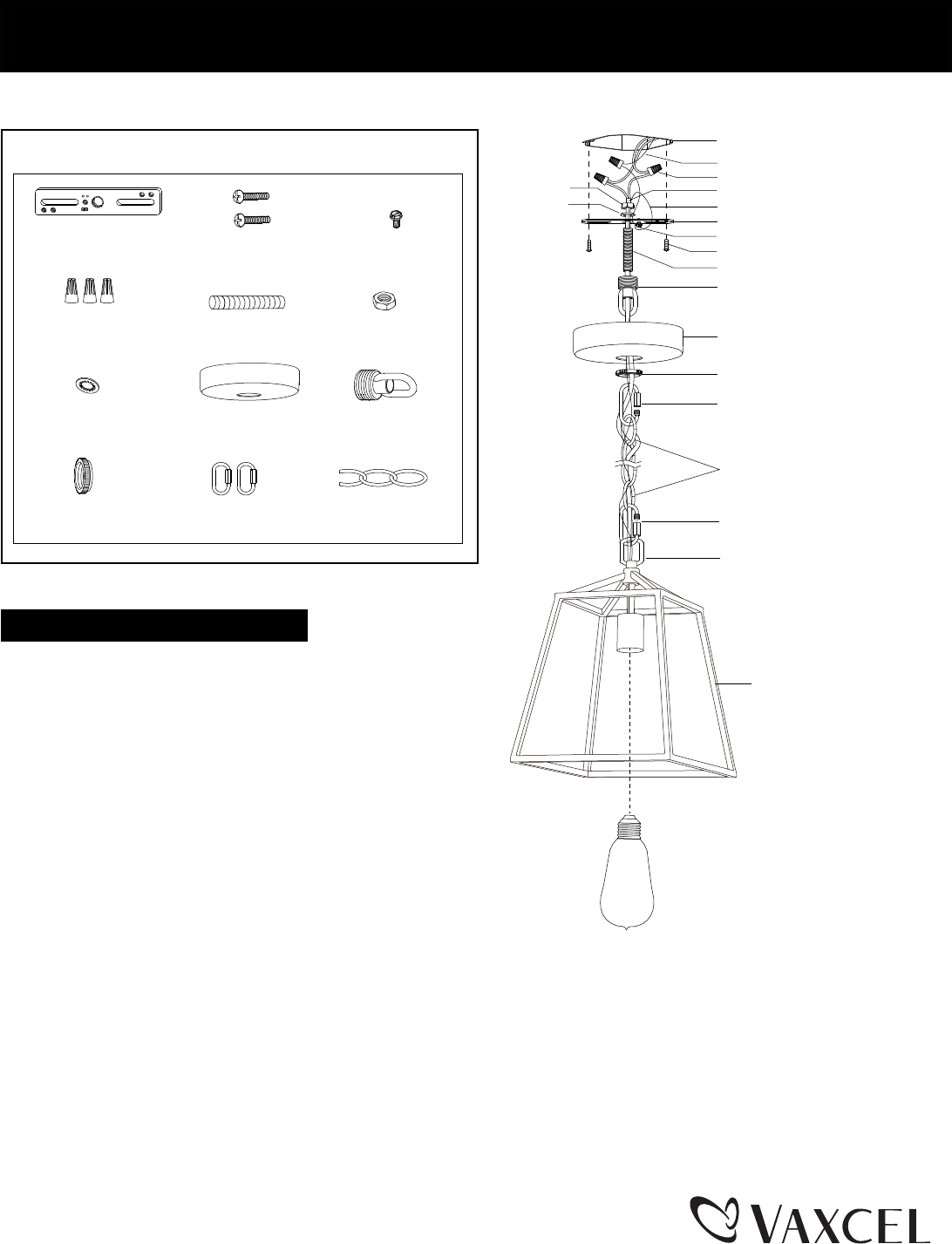 7. Thread the fixture wire and fixture ground wire through the top loop (I), threaded pipe (E) and