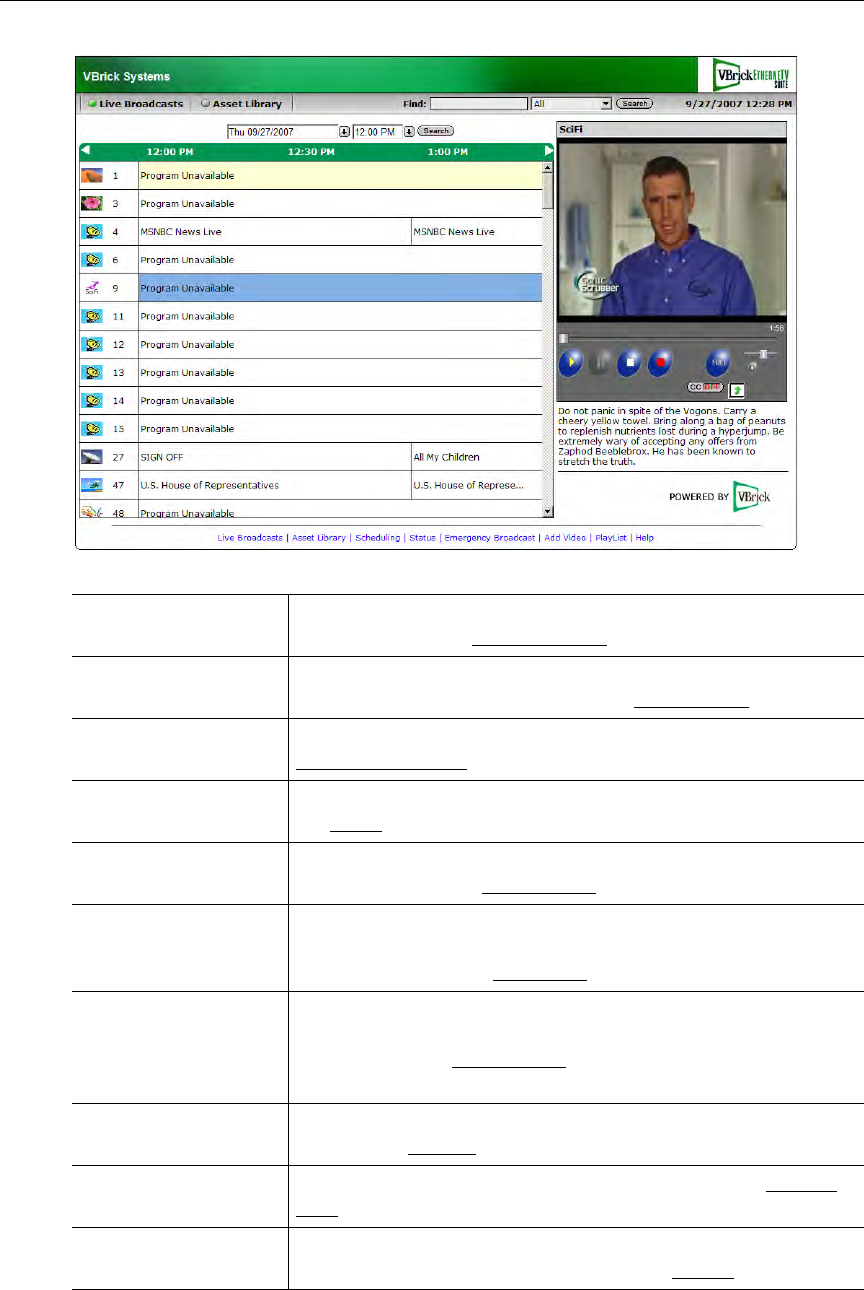 Scheduling View or create scheduled broadcasts of live or stored content. See