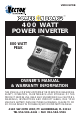 VEC031POB ™ 400 WATT POWER INVERTER 800 WATT PEAK OWNER’S MANUAL & WARRANTY INFORMATION THIS MANUAL CONTAINS IMPORTANT INFORMATION REGARDING SAFETY, OPERATION, MAINTENANCE AND STORAGE OF THIS PRODUCT. BEFORE USE, READ AND UNDERSTAND ALL CAUTIONS, WARNINGS, INSTRUCTIONS AND PRODUCT LABELS, PLUS YOUR VEHICLE’S BATTERY MANUFACTURER GUIDELINES. FAILURE TO DO SO COULD RESULT IN POSSIBLE INJURY OR PROPERTY DAMAGE. 4140 SW 28TH WAY, FT.