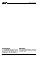 VEGA Grieshaber KG Am Hohenstein 113 D-77761 Schiltach Phone (0 78 36) 50 - 0 Fax (0 78 36) 50 - 201 e-mail info@vega-g.de The statements on types, application, use and operating conditions of the sensors and processing systems correspond to the actual knowledge at the date of printing. Technical data subject to alteration 2.22 647 / Nov.