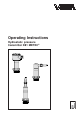 Setup Note: S Z ti Op 1 2 3 4 5 + - 4...20mA 12V...36V DC Bedieneinsatz operating unit Adjustment For adjustment of zero and span, an ammeter must be connected to terminals 1 and 3. The measured value is identical to the output current. 1 Adjustment of zero (e.g. process pressure zero or empty vessel) • Set rotary switch to zero. • By pushing the "+" and "–" keys simultaneously, the current jumps directly to 4 mA or you can adjust a current of 4 mA with the "+" and "–" keys.