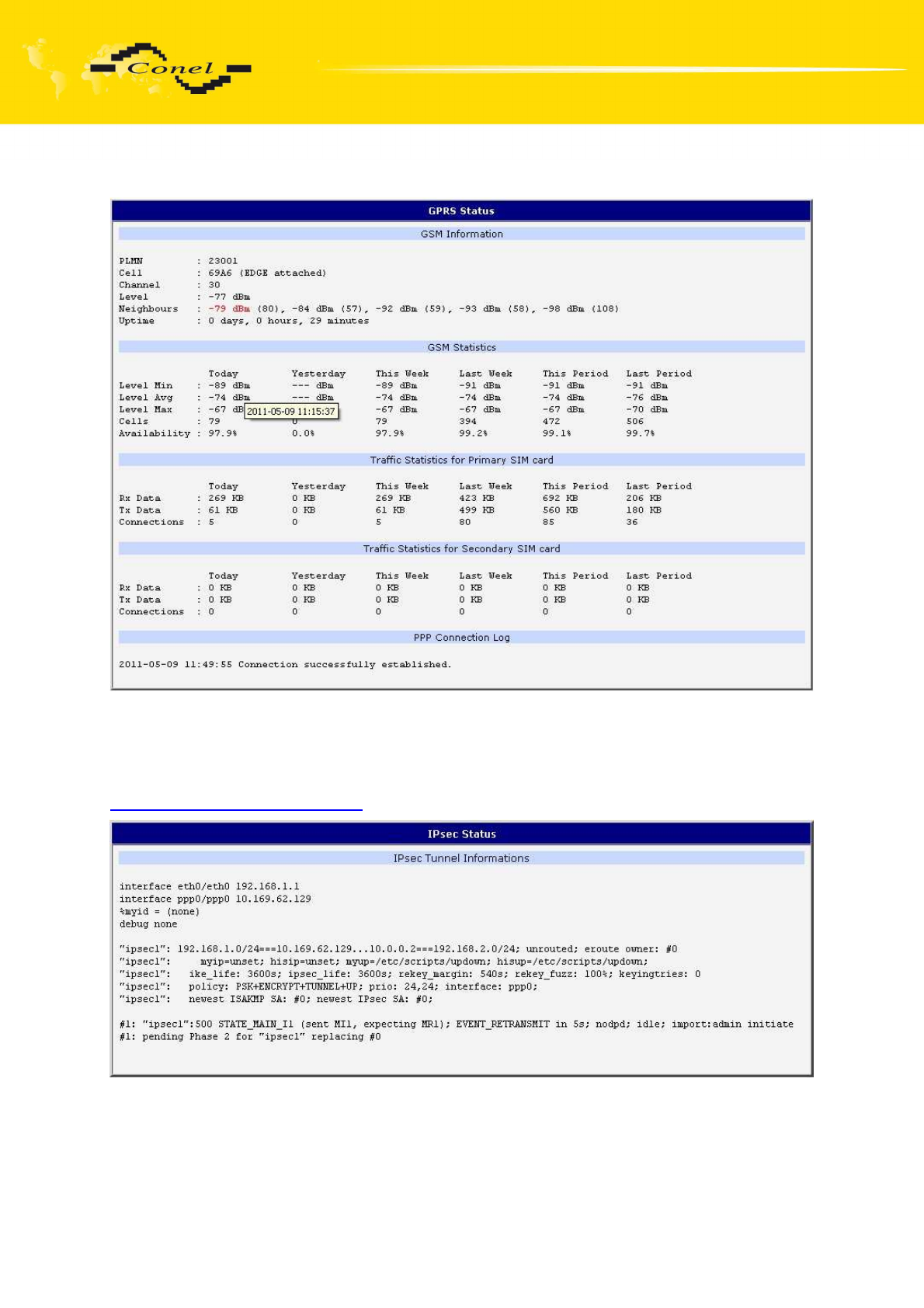 Information on actual IPsec tunnel state can be called up in option IPsec in the menu.