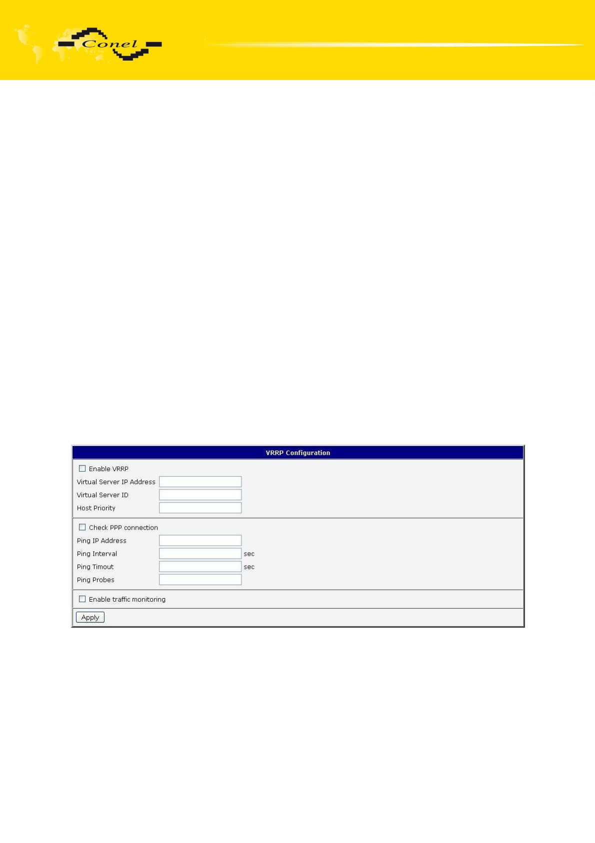 To enter the VRRP configuration select the VRRP menu item. VRRP protocol (Virtual