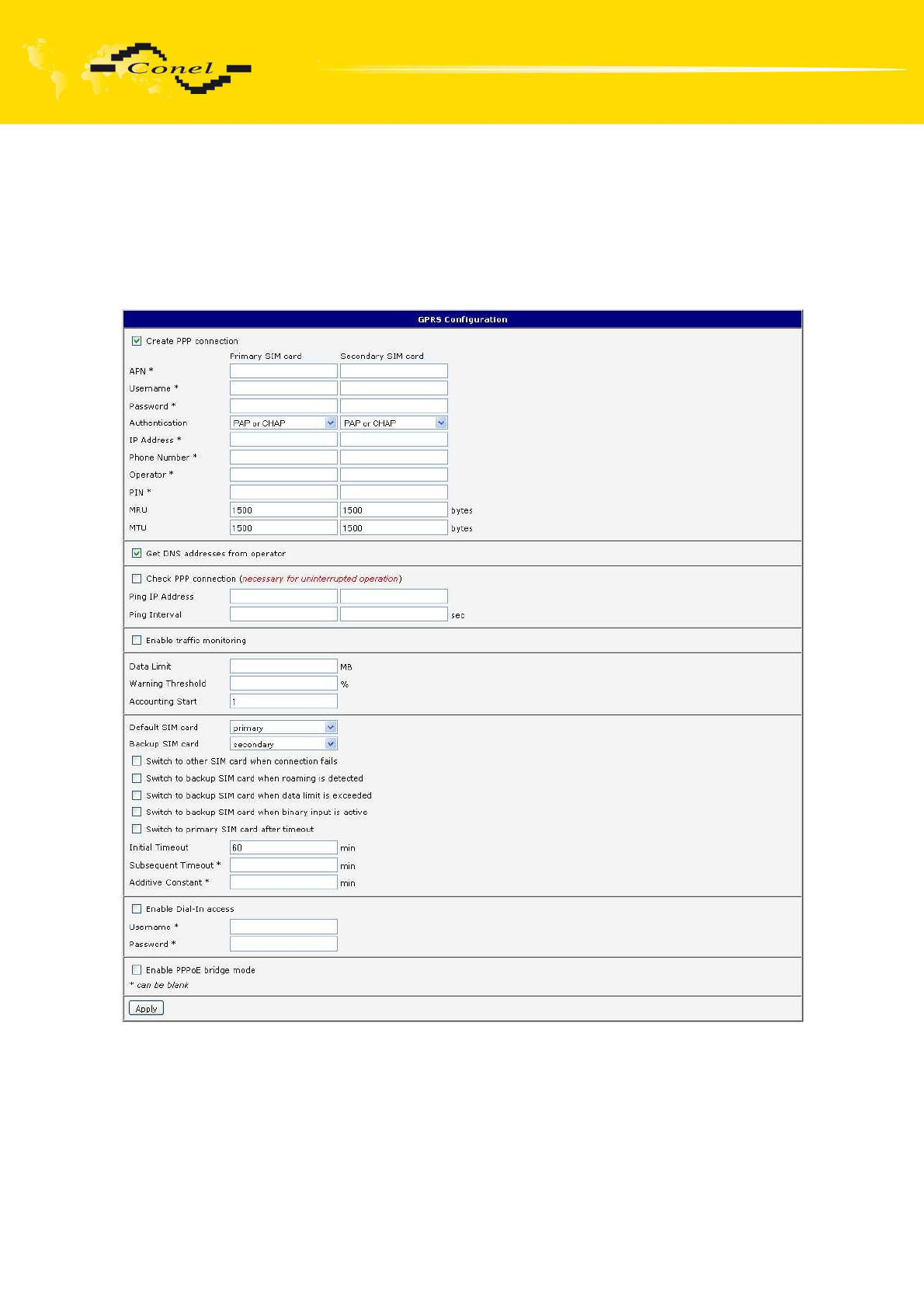 If the Enable PPPoE bridge mode option selected, it activate the PPPoE bridge