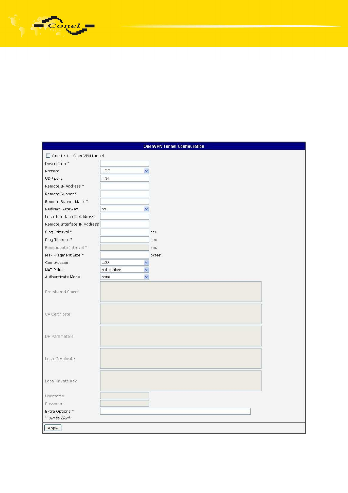 additional parameters of the OpenVPN tunnel, for example DHCP options etc.