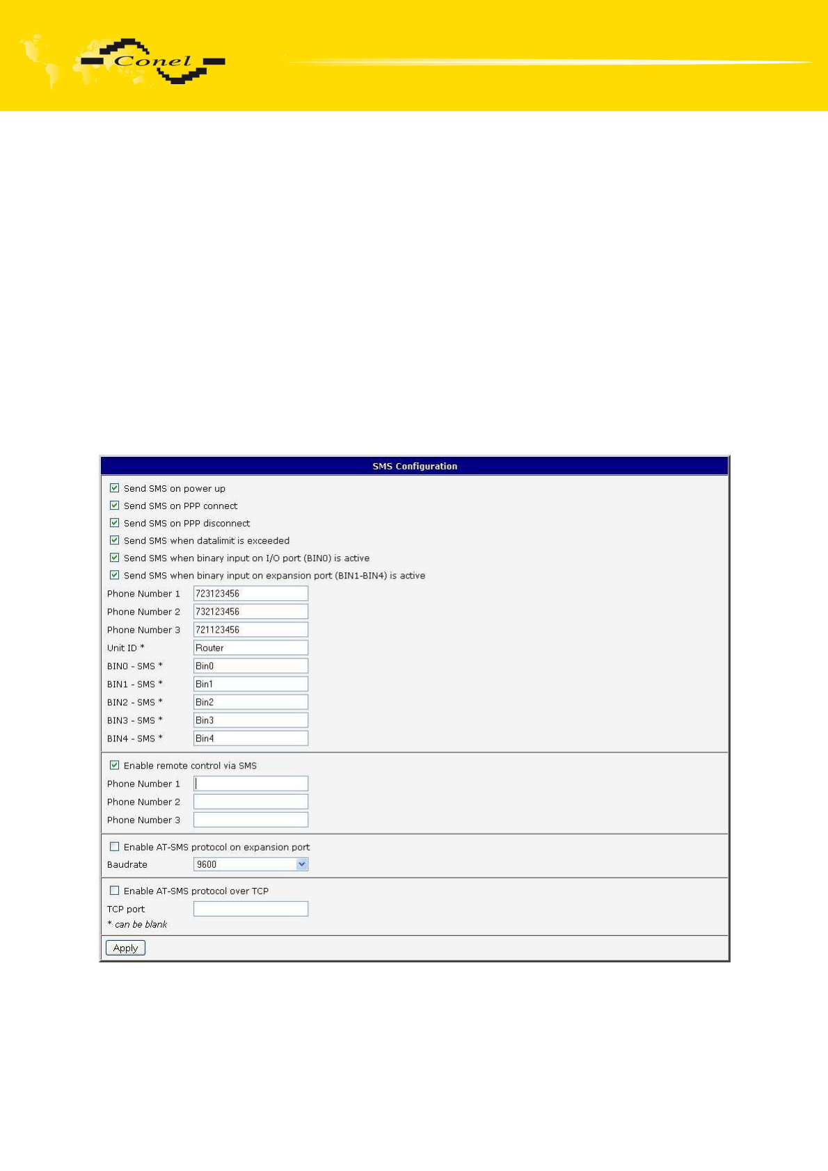 After powering up the router, at introduction of the telephone number comes SMS in the