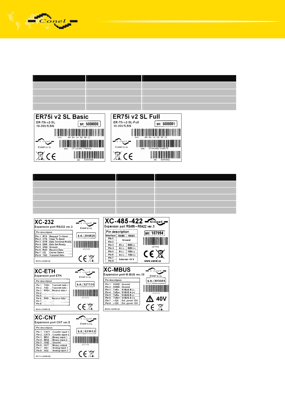 Expansion port ETHERNET XC-ETH Internal power supply