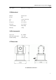 SVEX-Q18 Explosion proof Camera Manual Book Ver: 0.1 Video output BNC joint / 1.0±0.2Vp-p / 75Ω 2.5 Mechanical Material Stainless 304 IP level IP67 Pan 0~360° continuously Tilt -90°~-+30° Pan speed 0.1°/S ~60°/S Tilt speed 0.1°/S ~60°/S Unit/ Ship weight 22Kg / 25Kg Mounting ceiling 2.6 Environmental Air pressure 86~106KPa Environment temperature -15℃~+50℃ Relative humidity U95%RH (+25℃) 2.7 Dimension P1.