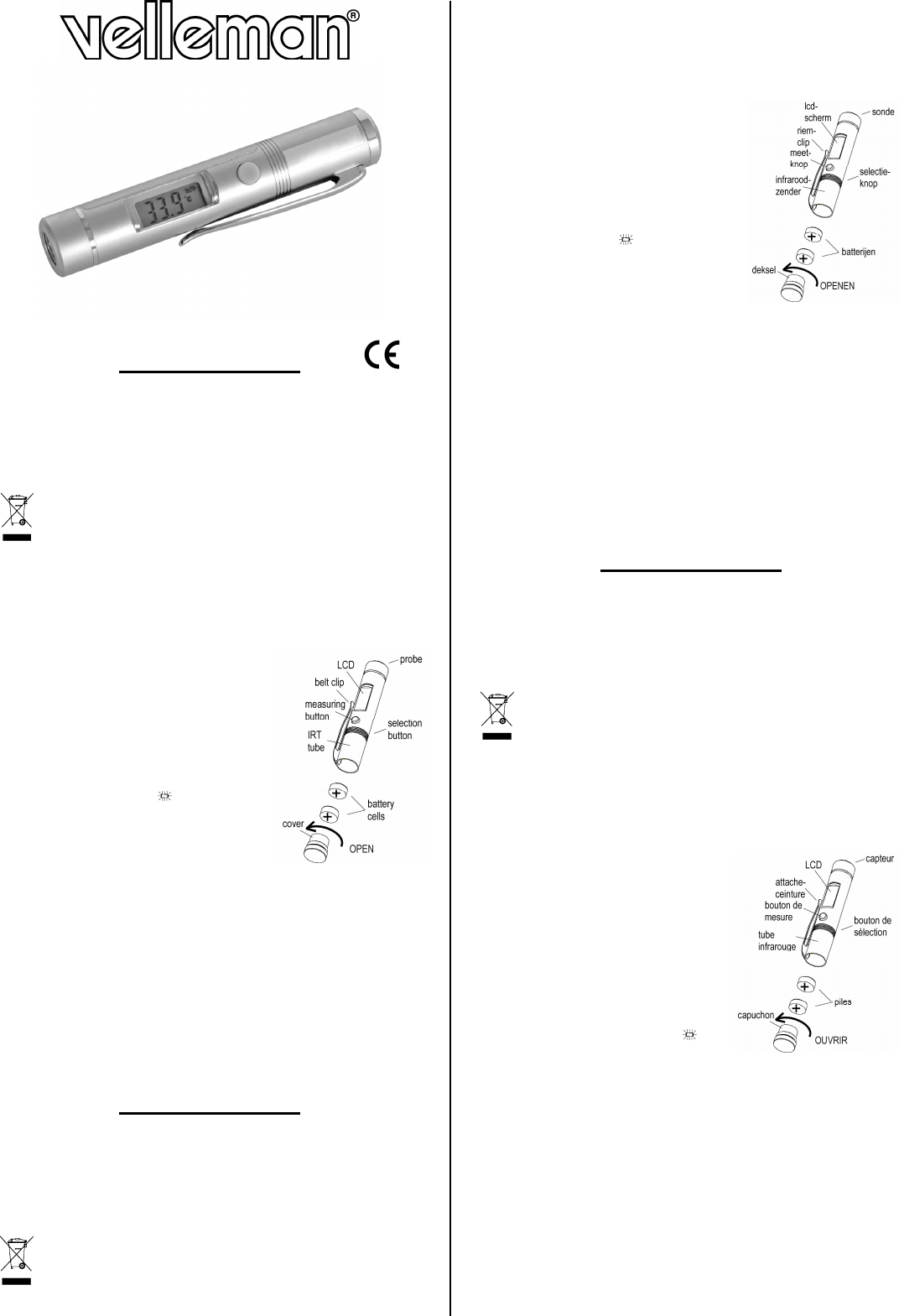 Gebruik dit toestel enkel met originele accessoires. Velleman nv is niet aansprakelijk voor
