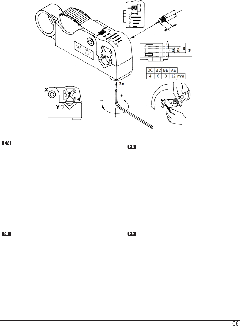x Plaats het oranje blokje Z naargelang het te strippen kabeltype.