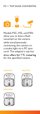 PC + TOP SHOE CONVERTER Models PSC, PSS, and PSN allow you to have a flash mounted on the camera while simultaneously connecting the camera to a studio light via a PC sync cord. The adapter’s top hot for the specified camera.