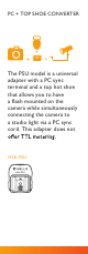 PC + TOP SHOE CONVERTER The PSU model is a universal adapter with a PC sync terminal and a top hot shoe that allows you to have a flash mounted on the camera while simultaneously connecting the camera to a studio light via a PC sync cord.