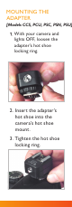 MOUNTING THE ADAPTER [Models CCS, PCU, PSC, PSN, PSU] With your camera and lights OFF, loosen the adapter’s hot shoe locking ring. 2. Insert the adapter’s hot shoe into the camera’s hot shoe mount. 3. Tighten the hot shoe locking ring.
