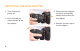 MOUNTING THE LENS ADAPTER Note: Place the lens and camera on a stable, flat surface when mounting or removing the lens adapter. 3. Line up the white alignment dots on the lens adapter and the camera. 1. Turn the camera’s power off. 4. Carefully insert the lens adapter into the camera, and rotate clockwise until it locks into place. 2. Remove all caps before mounting.