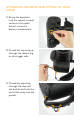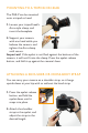 ATTACHING THE STRAP AND FITTING TO YOUR HAND 1. Screw the baseplate into the camera’s tripod socket so the eyelet doesn’t cover the battery compartment. 2. Thread the top strap up through the camera lug on the trigger side. 3. Thread the top strap through the loop and the buckle, and tuck the end of the strap into the pocket.