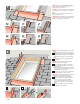 2 7" 180 mm 3" 75 mm 3" 75 mm ENGLISH: To ensure waterproofing, skylight curbs shall be completely wrapped in VELUX adhesive skylight underlayment as indicated. Underlayment must be applied before installing the flashing. Remove existing roofing underlayment around the rough opening as shown.