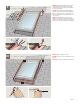 4 English: Wrap the side frames and corners of the skylight with VELUX adhesive skylight underlayment and create water-shedding laps over roofing underlayment. Note: Observe the measurements stated. 6" 150 mm Español: Envuelva las esquinas y lados del marco del tragaluz con la lámina de soporte autoadhesiva VELUX para crear solapas impermeabilizantes sobre la lámina de soporte del techo. Nota: Respete las medidas especificadas.