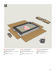 ENGLISH: Maintain distance to frame as shown; cut tiles, if necessary. Trim foam gasket to fit tiles. 22 Adjust the tile support and bend strips to hold it in place. 2 3/8 - 6" 60-150 mm ESPAÑOL: Respete la distancia al marco como se indica. Si fuese necesario, corte las tejas. Recorte la empaquetadura de gomaespuma para que coincidan con las tejas. Ajuste el soporte para tejas y doble las tiras para sostenerlo en el lugar.