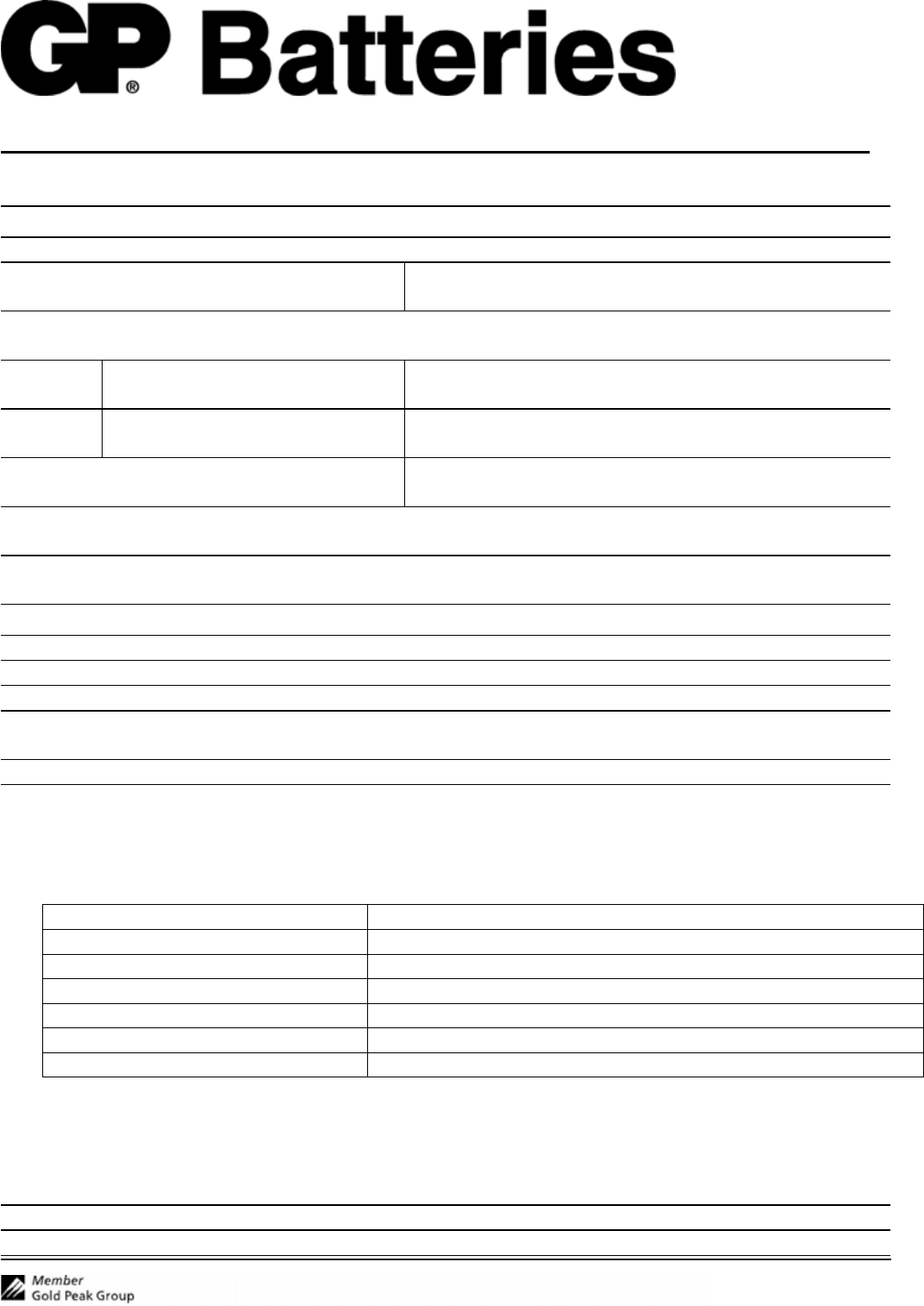 Material Safety Data Sheet for GP Cylindrical Alkaline Battery