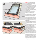 6 6" 150 mm 6" 150 mm ½" 13 mm English: To ensure waterproofing, skylight frames should be completely wrapped in VELUX adhesive skylight underlayment supplied with the flashing. This underlayment must be applied before installing the flashing. Note: If snow accumulation on the roof is likely, waterproofing is achieved by installing a continuous self-adhesive waterproof membrane beneath the roofing material and flashing material.