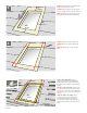 2 English: Remove existing roofing underlayment around the rough opening as shown. 7" 180 mm Español: Retire la lámina de soporte existente de la zona alrededor del hueco tal como se indica. Français : Retirer la membrane de toiture existante autour de l'ouverture brute, tel qu'illustré. 4½" 113 mm 4½" 113 mm English: Mark corners of the rough opening. 3 Español: Marque las esquinas alrededor del hueco. Français : Marquer les coins de l'ouverture brute.