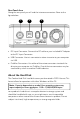 Rear Panel Area Along the rear panel you will find the interface connectors. Refer to the figure below. 1 2 3 www.verbatim-europe.com 1 DC Input Connector. Connect the DC cable of your included AC Adapter to the DC Input Connector. 2 USB Connector. Use this connector to attach the drive to your computer via USB. 3 FireWire Connectors. Use either of these two connectors to attach the drive to your computer via FireWire. One of the two connectors may be used to daisy-chain to another FireWire device.