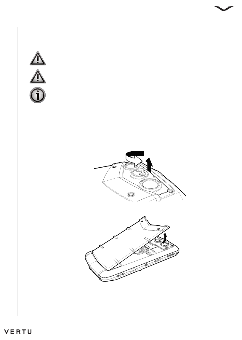 With the back of the Vertu phone facing you, lift the D-ring with your fingernail.