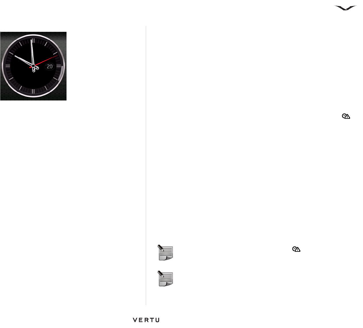 • The Vertu clock automatically sets the time.