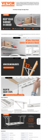 36 in. W x 96 in. D Overhead Adjustable Garage Storage Rack 600 lbs. Adjustable Height Ceiling Mount Garage Rack, White