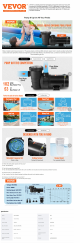 Pool Pump 5280GPH 2HP 115V Single Speed Swim Pool Filtre Pump 1500-Watt Self Primming w/ Strainer Basket 4 Pipe Fittings