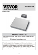 SHIPPING SCALE MODEL:SF-882 NEED HELP? CONTACT US! Have product questions? Need technical support? Please feel free to contact us: CustomerService@vevor.com This is the original instruction, please read all manual instructions carefully before operating. VEVOR reserves a clear interpretation of our user manual. The appearance of the product shall be subject to the product you received. Please forgive us that we won't inform you again if there are any technology or software updates on our product.