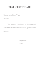 TEST CERTIFICATE Name: Machine Vice Model: The product conforms to the standard qualified after the examination, permits the Waxwork.