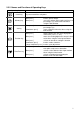 2.2 LCD Indicators and Operating Keys 2.2.1 Symbols Displayed HI 0 0 F Pcs # OK g% LO Display Description g Grams →0← Zero point →T← Tare being subtracted ○ Indication of stable balance (If the light is off, the balance is unstable.) * Balance powered up (Lights up when the power is turned off) or data transmitted Pcs Counting mode % Percentage mode Indication of judgement result (HI/OK/LO) when the limit function is active.