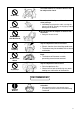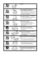 Avoid applying excess force or impact to the balance. 定格外禁止 Do Not Apply Force Do not use the balance in a location were it may be subjected to abrupt changes in ambient temperature or humidity. • Accurate measurement may not be obtained. 定格外禁止 Do Not Use 定格外禁止 Do Not Overload • Optimum operations occur when ambient temperatures range from 5°C to 35°C, and less than 80% relative humidity. Do not use the balance when [] (Overloaded) is displayed.