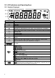 2.2.2 Names and Functions of Operating Keys Operating Key On/off key Memory key Set key Function key Zero/Tare key Function Key to turn on/off the unit power [Brief press] [Brief press] initiates print or output. saves the settings of the number of pieces or percentages (%), or the limit value when using the limit function. [Brief press] starts setting the number of pieces or percentages (%). [Continuous press] starts setting the limit value when using the limit function.