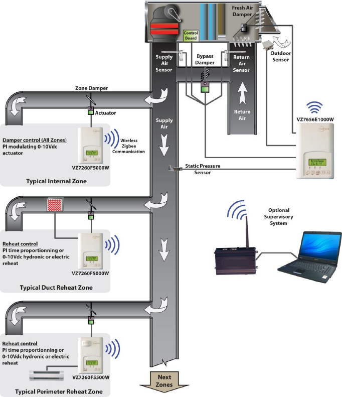 Viconics VZ7260X5X00W Zone controllers are used in conjunction with the
