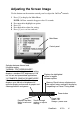 Using your monitor Setting the Timing Mode Setting the timing mode is important for maximizing the quality of the screen image and minimizing eye strain. The timing mode consists of the resolution (example: 1024 x 768) and refresh rate (or vertical frequency, example: 85 Hz). For the best picture quality set your monitor to: VESA® 1024 x 768@ 85 Hz. To set the Resolution: 1 2 3 4 Right-click on the Windows desktop. Click Properties on the drop-down menu. Click the Settings tab.