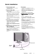 Quick Installation 1 Connect power cord Connect the power cord to a properly grounded AC outlet. 2 Connect video cable Make sure both the monitor and computer are turned OFF. • Connect the video cable to the computer. Macintosh® users: Models older than G3 require a Macintosh adapter. Attach the adapter to the computer and plug the video cable into the adapter. To order a ViewSonic® Macintosh adapter, contact ViewSonic. See “Customer Support” on page 13.