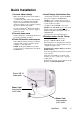 Quick Installation 1 Connect video cable(s) Make sure both the monitor and computer are powered OFF. • Connect the video cable to the computer Macintosh users: Models older than G3 require a ViewSonic Macintosh adapter. Attach the adapter to the computer and plug the video cable into the adapter. To order a ViewSonic® Macintosh adapter, contact ViewSonic. See Customer Support in this user guide. 2 Connect power cord Connect the power cord from the monitor to a properly grounded AC outlet.