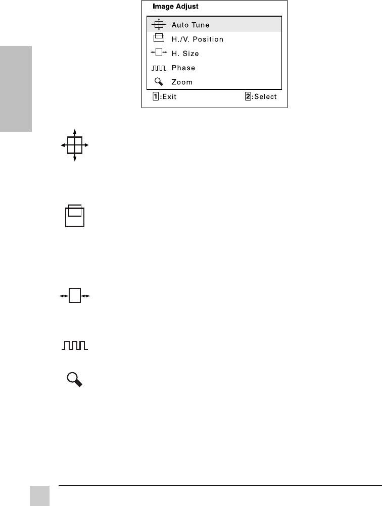 H SIZE (Horizontal Size) adjusts the width of screen image.