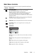 Adjusting the Screen Image Use the buttons on the front control panel to display and adjust the OnView® controls which display on the screen. The OnView controls are explained at the top of the next page and are defined in “Main Menu Controls” on page 9. Main Menu with OnView controls Front Control Panel shown below in detail Speaker Speaker Microphone Displays the Main Menu or exits the control screen and saves adjustments. Scrolls through menu options and adjusts the displayed control.