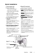 Quick Installation 1 Connect power cord 2 Connect video cable 4 Wizard CD (continued) (2) Follow the on-screen instructions. • Make sure both the LCD display and computer are turned OFF • Remove rear panel covers if necessary • Connect the video cable from the LCD display to the computer Macintosh users: Models older than G3 require a Macintosh adapter. Attach the adapter to the computer and plug the video cable into the adapter. To order a ViewSonic® Macintosh adapter, contact ViewSonic Customer Support.