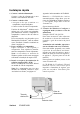 Limpeza do monitor • Assegure-se de que o monitor esteja desligado. • Nunca use spray nem derrame qualquer líquido Diretamente na tela ou no gabinete. Para limpar a tela : 1. Passe uma flanela limpa, macia e sem fiapos na tela. Isso remove a poeira e outras partículas. 2. Se isso não for suficiente, aplique uma pequena quantidade de um limpavidros, que não contenha amônia ou álcool, em uma flanela limpa, macia e sem fiapos e passe na tela. Para limpar o gabinete : 1. Use uma flanela seca e macia. 2.