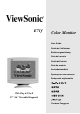 Getting Started Congratulations on your purchase of a ViewSonic® color monitor. Important! Save the original box and all packing material for future shipping needs. NOTE: The word “Windows” in this user guide refers to the following Microsoft operating systems: Windows 95, Windows NT, Windows 98, Windows 2000, Windows Me (Millennium), and Windows XP.