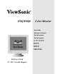 Getting Started NOTE: The word “Windows” refers to Microsoft Windows 95, NT, 98, 2000 and Me (Millennium). Package Contents • • • • • E90f/E90fb monitor Quick Start Guide Power cord D-sub video cable (for VGA graphics card) ViewSonic Wizard CD-ROM (includes User Guide PDF and INF/ICM display optimization files) Precautions • For best viewing conditions sit at least 18” from the monitor. • Avoid touching the screen with your fingers. Oils from the skin are difficult to remove.