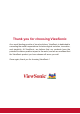 Thank you for choosing ViewSonic As a world leading provider of visual solutions, ViewSonic is dedicated to exceeding the world’s expectations for technological evolution, innovation, and simplicity. At ViewSonic, we believe that our products have the potential to make a positive impact in the world, and we are confident that the ViewSonic product you have chosen will serve you well.