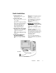 Troubleshooting No power • Make sure power button (or switch) is ON. • Make sure A/C power cord is securely connected to the back of the monitor and to a power outlet. • Plug another electrical device (like a radio) into the power outlet to verify that the outlet is supplying proper voltage. Power is ON but no screen image • Make sure the video cable supplied with the monitor is tightly secured to the video output port on the back of the computer.