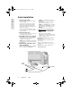 G75f-.book Page 14 Monday, November 6, 2000 3:44 PM Cleaning the Monitor E N G L I S H • MAKE SURE THE MONITOR IS TURNED OFF. • NEVER SPRAY OR POUR ANY LIQUID DIRECTLY ONTO THE SCREEN OR CASE. To clean the screen: 1 2 Wipe the screen with a clean, soft, lint-free cloth. This removes dust and other particles. If still not clean, apply a small amount of non-ammonia, non-alcohol based glass cleaner onto a clean, soft, lint-free cloth, and wipe the screen. To clean the case: 1 2 Use a soft, dry cloth.
