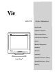 Index A/C power 17 Ammonia 6 Aperture grille pitch 5, 14 ARAG® coating 5, 14 CD-ROM 5, 8 Cleaning 6 Color, ViewMatch® 11, 12 Compatibility 14, 15 Composite sync 14, 16 Connector 5, 14 Consumption 14 Convergence 9, 18 Control Panel, Front 9 CRT 14, 18 Cupid Bow 10 Customer support, back cover DDC Diagnostic Utility 5, 8 Data Recall 13 Degauss 9, 13, Diagonal viewable screen 5, 14 Dimensions 15 Display area 15 Display Suite 8 Energy consumption 5 Ergonomic 18 Exit 9-13 Factory settings 13, 16 Flickering 17, 1